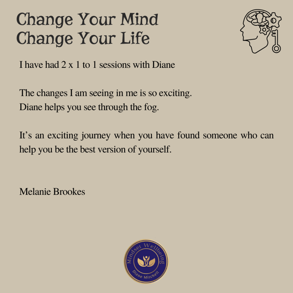 Reclaim your life, gain a better sense of self now. Change your mind supporting mental clarity. Diane Mitchell Mindset Wellbeing